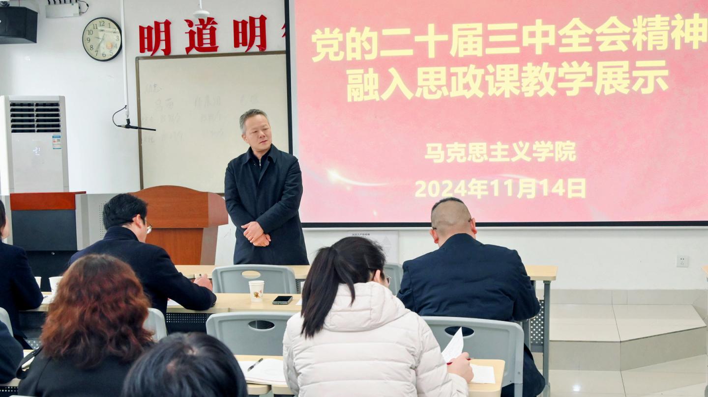为深入贯彻落实党的二十届三中全会精神,持续推进全会精神进课堂、进教材、进师生头脑,不断提升思政课教学水平,11月14日上午,365公司党委书记张志昌到马克思主义学院调研思政课建设,现场观摩指导“党的二十届三中全会精神融入思政课”教学展示活动。教学展示中,马克思主义学院杨增强教授围绕全会精神的理解、融入思政课的对接点和方式方法作了辅导报告。青年教师刘健、王晓霞、朱琳分别以《为什么全过程人民民主超越了...