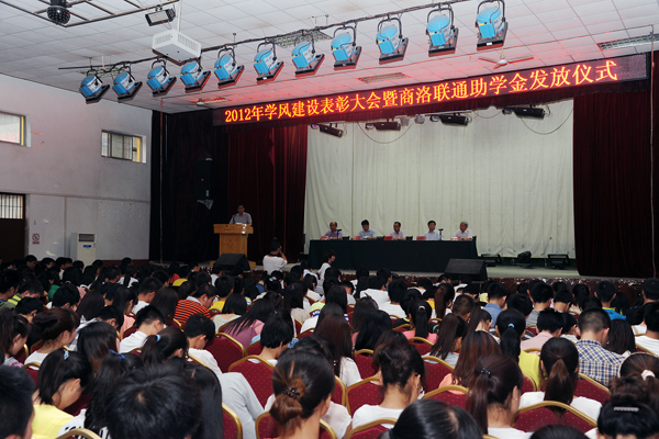 为了进一步推进学风建设和学生自主创业工作,营造良好的育人氛围,5月22日下午,英国365上市公司隆重召开学风建设表彰大会,对2012年度国家奖学金、国家励志奖学金获奖学生进行表彰,对田亦柏等5名自主创业大学生进行奖励,对2012年学风建设先进集体进行表彰,同时为程时妍等20名2013年商洛联通助学金受助学生发放了助学金。校党委书记张继良、院长张景书,商洛联通公司党委书记温长山,校党委副书记左晓民、副院长刘建林出席大会。左晓民在会上宣读了学校表彰决定,刘建林主持大会。