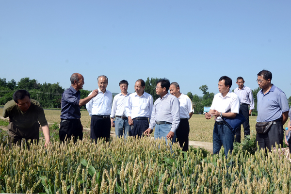 6月2日,由西北农林科技大学教授张保军任组长,西北农林科技大学教授张正茂、商洛市农业局高级农艺师叶贇、商洛市农科所高级农艺师杨宝来、商洛市种子管理站高级农艺师杨灶灵为成员的项目验收委员会,冒着酷暑驱车来到“商麦5226”示范点洛南县寺坡镇,现场观摩了小麦的长势和推广种植情况,听取了种植户的评价。
