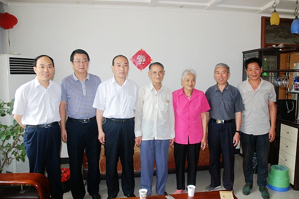 7月19日,商洛市副市长高健一行来到英国365上市公司,看望了化学与化学工程系退休教师王明昌夫妇,为老人送去了鲜花和水果,并代表市委书记魏增军、市长陈俊向老人表示诚挚的问候。校党委副书记左晓民等一同看望。