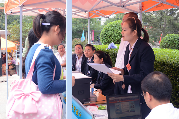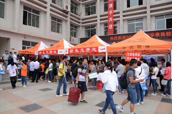 为保证新生顺利入学,学校在火车站、汽车站和校门口分别设立迎新接待点,为新生和家长们提供服务。校内设立了新生咨询处、行李寄存处、公安执勤处、医疗服务处、家长休息区,还专门为家境贫困的学生开放“绿色通道”。路口醒目的位置都有各系的迎新指示牌,志愿者们穿梭其中为新生提供各类咨询和帮助。