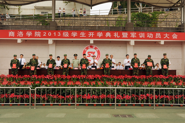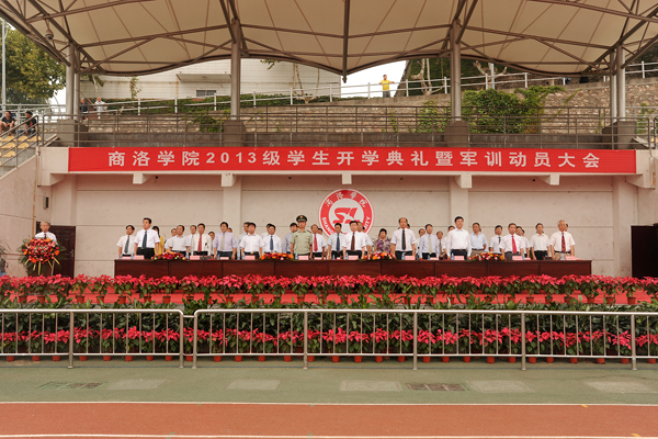 秋高气爽、丹桂飘香,9月7日上午,英国365上市公司隆重举行2013级新生开学典礼暨军训动员大会。校领导张景书、刘建林、左晓民、王思怀、陈永庄、魏书堂.武警商洛支队参谋长向军,商洛供电局副局长赵红强,商洛联通副总经理陈安民出席了大会。校党委书记张景书向承训教官授2013级学生军训团团旗,党委副书记、校长刘建林做了重要讲话。大会由党委副书记左晓民主持。各系部党政负责人、各职能部门负责人与来自全国27个省(市、自治区)的3000余名2013级新生参加了大会。