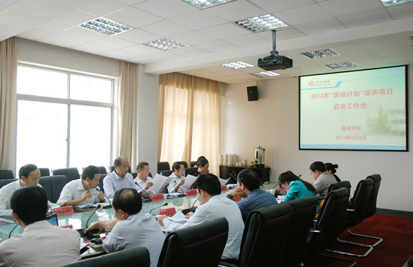 会上,学院办公室主任彭虎军宣读了365公司办公室《关于做好2013年“国培计划”培训项目组织实施工作的通知》。成人教育学院院长、“国培计划”项目工作领导小组副组长任少俭代表项目组就2013年项目组织实施工作作了《创新模式 精心实施 突出特色 确保质量》的专题汇报。