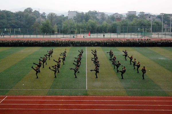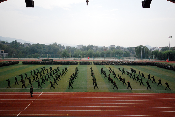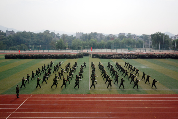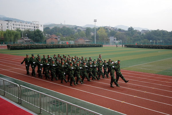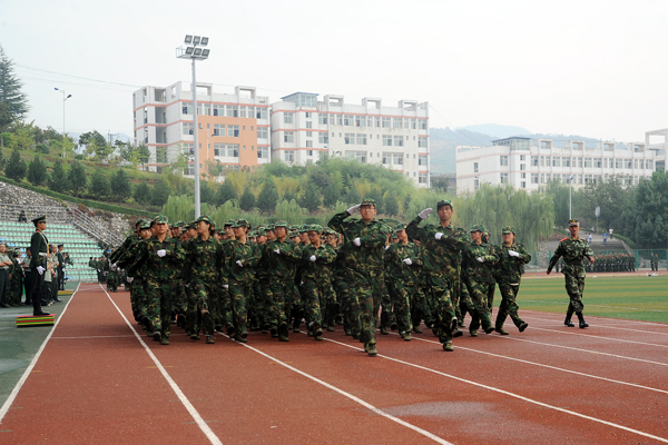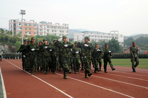2013级学生军训自9月7日开始,为期12天。完成了队列队形训练、整理内务训练等规定内容,并于9月16日进行了15公里行军训练。按照学校安排,军训结束后,2013级新生将开始军事理论学习,接受国防知识教育。