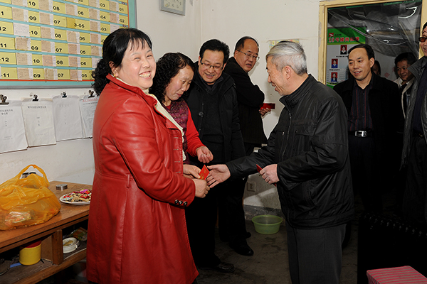 在学院办公室、保卫处、后勤保障处负责人的陪同下,左晓民、魏书堂一行先后前往各处门卫、教学楼、公寓、图书馆、体育场值班室,后勤保障处公寓服务中心、水电班,保卫处警务室、监控室等一线岗位,与工作人员亲切握手,代表学校党政向大家拜年,对坚守在工作岗位上的工作人员表示感谢,并亲手送上节日慰问品。在每一个慰问地点,校领导都详细询问了各部门的工作情况,要求每位工作人员在春节期间一定要把安全稳定放在首位,保证全校师生度过一个温暖、祥和的春节。