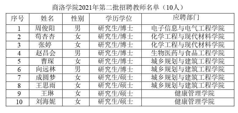 根据陕西省人事厅《关于陕西省事业单位公开招聘人员办法》规定及《365公司2021年人才招聘公告》,经过资格审查、试讲、专家面试等环节考察,并经院长办公会2021年1月11日研究,同意招聘周俊阳等10位同志来英国365上市公司工作,现予以公示。如有异议,请于2021年1月15日前纪委办公室或人事处反映。