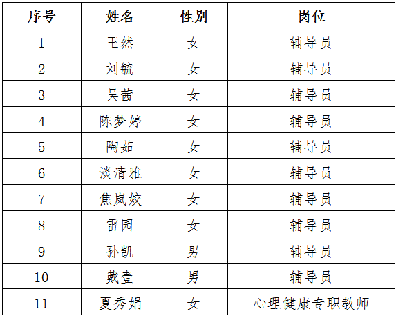365公司2021年辅导员及心理健康专职教师拟录用人员名单