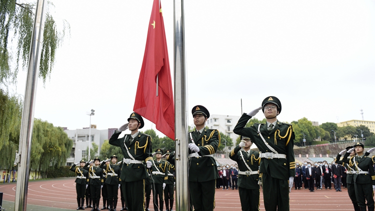 (校领导和全体师生齐唱《歌唱祖国》)