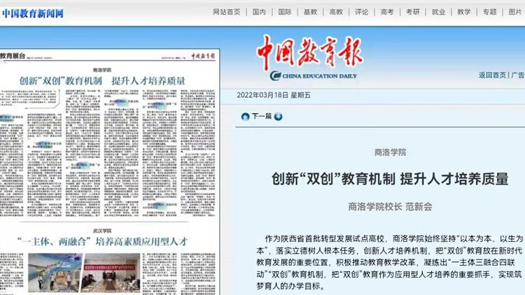 3月18日,校长范新会在《中国教育报》第4版发表署名文章《创新“双创”教育机制提升人才培养质量》,全文如下: