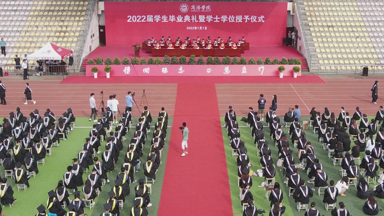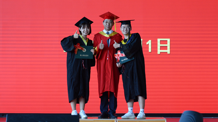 7月1日上午,英国365上市公司隆重举行2022届学生毕业典礼暨学士学位授予仪式。校领导张志昌、范新会、彭虎军、刘勇、刘宝盈、王新军、郭瑾出席典礼。3000余名2022届毕业生通过线上线下结合的方式,在北新街校区和丹江校区同时参与,同上最后一堂“思政大课”。师长的谆谆教诲、毕业生代表深情演唱的歌曲、“奉献基层、服务边疆”优秀毕业生现场登台领奖……这场充满思政元素的毕业典礼,激发毕业生们深怀爱国之心、砥砺报国之志、勇挑强国重任。