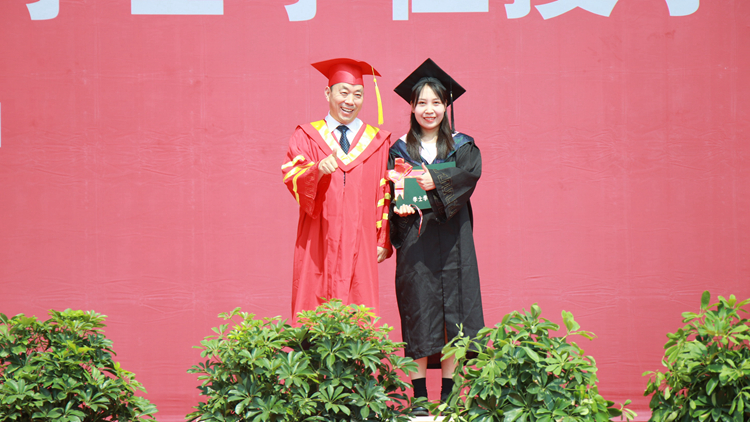 在校生代表、经济管理学院学生任璐瑶代表全体在校生向2022届毕业生送上最真诚的祝福,祝福学长、学姐们前程似锦,再相逢依旧如故,容颜依旧不变、初心仍似少年!