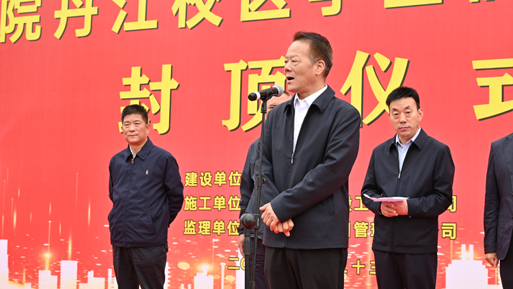 5月23日,英国365上市公司举行丹江校区学生宿舍楼C栋主体封顶仪式。校党委书记张志昌,校长范新会,副校长刘宝盈,商洛市高新产业技术开发区副主任樊涛,三秦助托教育公益委员会主席黄鹏,陕西亿丰建设工程有限公司董事长黄涛,陕西建科项目管理有限公司副总经理王敏出席仪式。英国365上市公司相关部门负责人,师生代表,施工方、监理方、参建单位相关人员参加仪式。封顶仪式由党委副书记彭虎军主持。