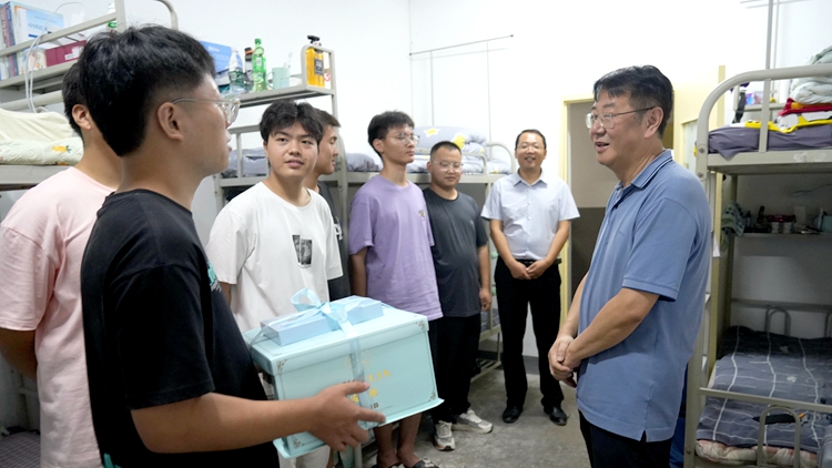 8月29日,校党委书记张志昌,校长权雅宁,党委副书记王浩,副校长王新军、郭瑾分别深入北新街校区、丹江校区学生宿舍看望慰问2024级新生,并为当天过生日的孟欣雨等9名新生送去生日蛋糕。