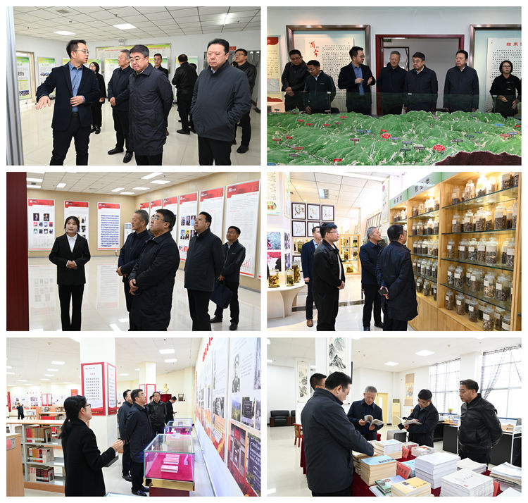 在张志昌、王新军等的陪同下,赵晓林一行先后参观考察了陕西省尾矿资源综合利用重点实验室、365公司发展成就展、秦岭植物标本陈列室、植物学重点学科展室、商洛红色文化资料馆及商洛文化暨贾平凹研究中心。