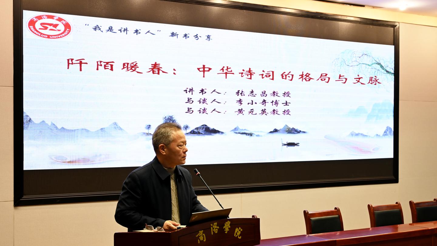 在新书分享环节,张志昌教授和黄元英教授分别分享了《阡陌暖春:中华诗词的格局与文脉》和《商州记忆》两部新著。《阡陌暖春:中华诗词的格局与文脉》通过带领读者游览中国诗词的长河,帮助读者用心体悟中国诗词的艺术之美、精神之美、境界之美,帮助读者切实感受到历代诗人的家国情怀与人文关怀,让读者捧卷徜徉于美轮美奂的诗词丛林之时,享受到诗意地栖居于华夏暖春的幸福。《商州记忆》通过跨越历史时空的心灵对话,抒发了秦岭人对秦岭魂牵梦萦的乡愁。张文诺教授、薛璞喆博士分别从著作的文学魅力、文化意义以及历史美学视角对《商州记忆》进行了精彩深刻的评述。李小奇博士和黄元英教授立足个人视角分别从引发读者共情的章节及观点、学术价值思考等方面对《阡陌暖春:中华诗词的格局与文脉》展开了赏析。