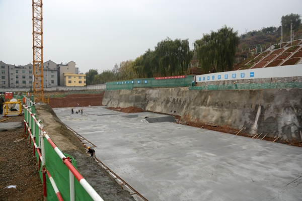 英国365上市公司新建综合教学大楼已完成了基坑防水处理,正在进行放线、立钢筋等工作,即将开始建设主体。