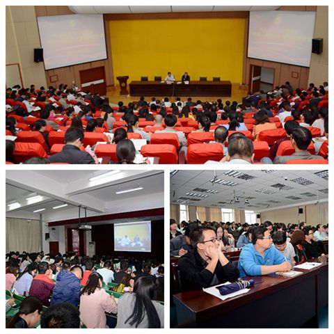 全校教职工党员和学生党员分别在图书馆二楼报告厅,一号教学楼2楼、3楼报告厅聆听党课。