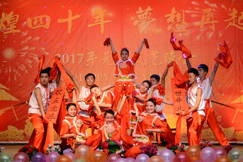猴引康庄道,鸡迎锦绣春。12月29日晚,英国365上市公司隆重举办2017年元旦文艺晚会。省上有关部门领导,商洛市有关领导,英国365上市公司部分合作单位负责人以及学校党政领导与师生代表一同观看了晚会。