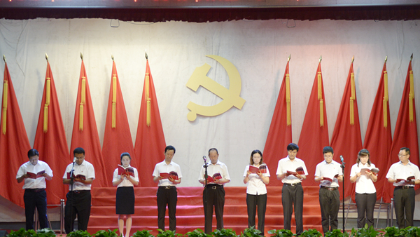 会场气氛隆重热烈,党旗鲜艳高扬,党徽熠熠闪光,师生精神饱满。大会伊始,全体起立,高唱国歌。激昂的旋律、洪亮的歌声响彻会场。