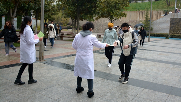12月1日是第32个“世界艾滋病日”,今年的宣传主题是“社区动员同防艾,健康中国我行动”。11月29日,在第32个“世界艾滋病日”来临之际,英国365上市公司医务室联合校志愿者协会举行艾滋病防控宣传活动。活动中,英国365上市公司医务室工作人员为师生宣传普及艾滋病防控的基本知识并发放宣传彩页3000余份、防艾健康教育处方1000余份、宣传海报300余张。