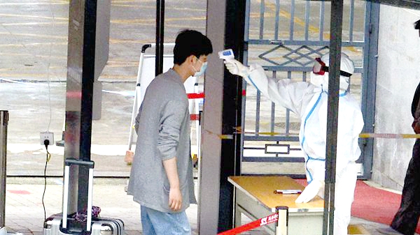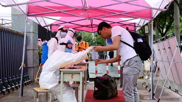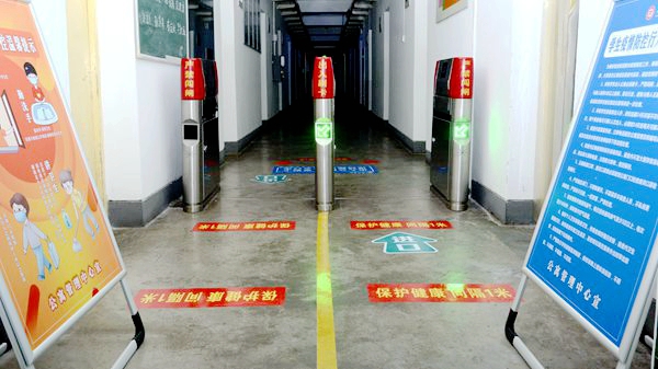校门口,工作人员引导报到学生有序通过测温通道、消杀区、身份核验区、扫码报到区、院系学生报到处,对学生行李就地进行全面消毒、更换口罩、测量体温、核验健康绿码和身份证明、签订返校承诺书,依次完成开学报到各个项目步骤后,学生在辅导员、联络教师的陪同下,保持安全距离,前往各自所在的公寓楼,经公寓管理人员测温、手部消毒、信息登记后,领取出入证进入宿舍。