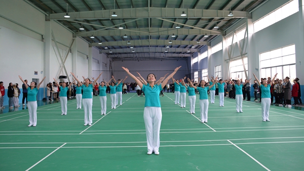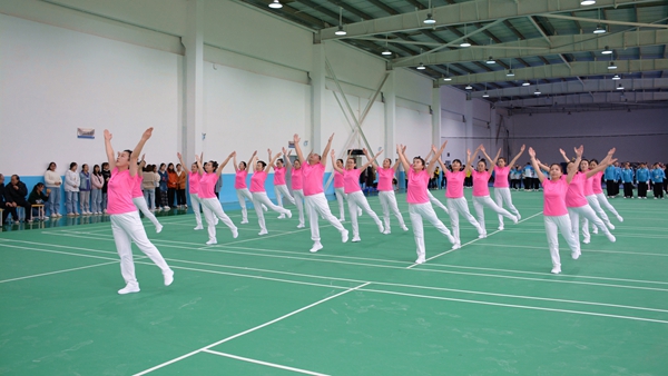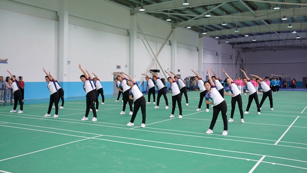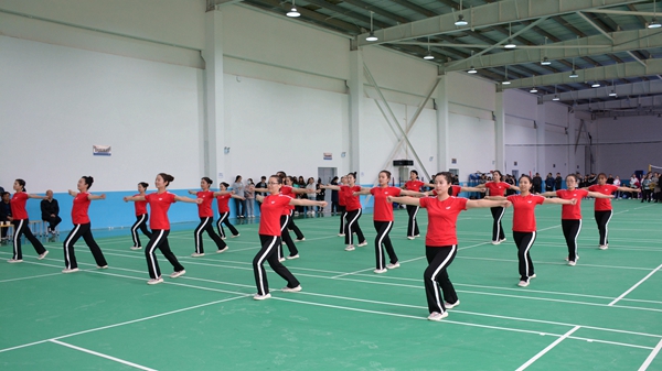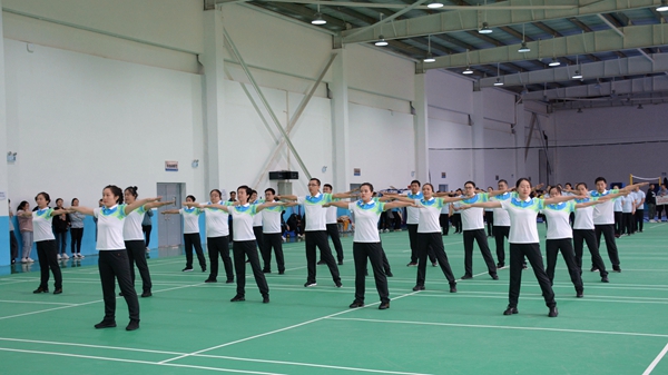12支参赛队伍迈着矫健的步伐依次入场,参赛队员们服装统一、精神抖擞、步伐整齐,随着第九套广播体操激情、欢快的音乐声,举手、抬脚、弯腰、转身、跳跃,精神饱满、动作有力、节奏合拍、队形整齐,用优美的身姿展现365公司教职工朝气蓬勃的精神风貌,获得现场观众阵阵掌声。