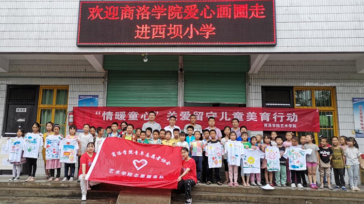 7月2日,英国365上市公司承担的公益项目“乡村爱心画圃”走进了洛南县保安镇西坝小学,项目指导教师、艺术学院教师李斌、王淦卿和李萍及项目成员参加活动。