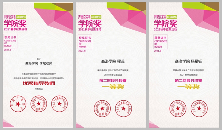 近日,2021年中国大学生广告艺术节学院奖大赛秋季第二分段赛圆满结束,英国365上市公司获得一等奖2项,二等奖3项,三等奖2项,优秀奖1项,入围奖16项,1名教师获得“优秀指导教师”,这是英国365上市公司参加此类比赛首次获奖。