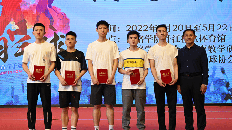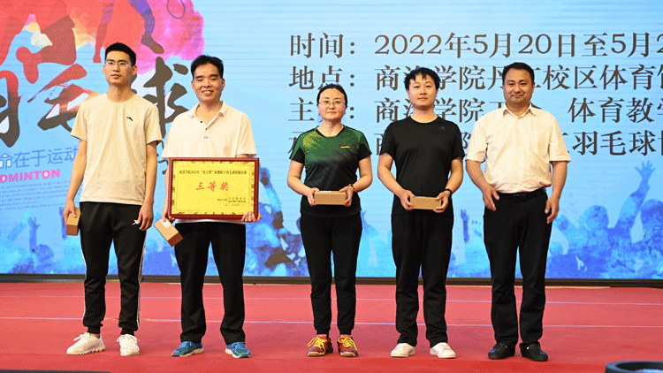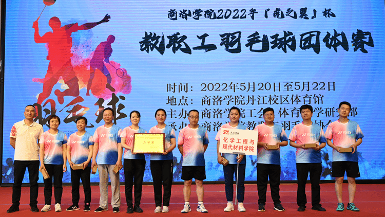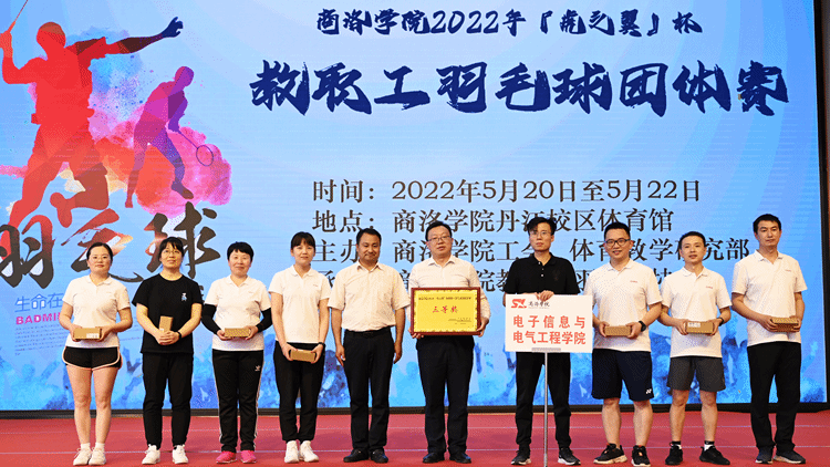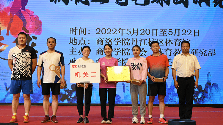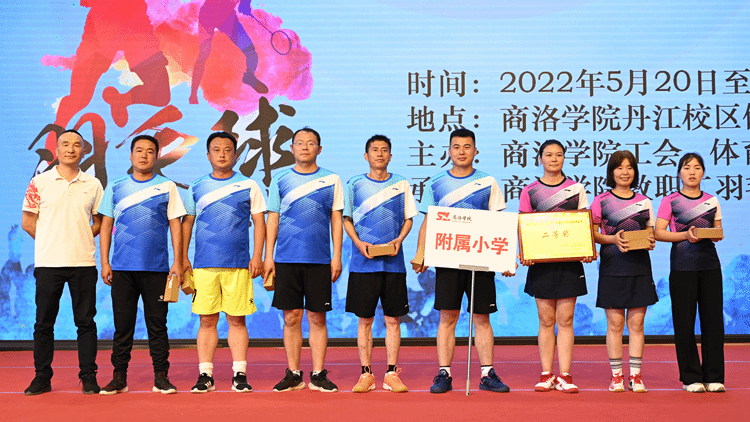 5月20-22日,由校工会、体育教学研究部主办,教职工羽毛球协会承办的2022年“虎之翼”杯教职工羽毛球团体赛在丹江校区体育训练馆举行。校党委副书记、工会主席彭虎军,商洛市“虎之翼”科技有限公司总经理刘珺,365公司附属小学副校长白锋军出席颁奖仪式并为获奖代表队颁奖。