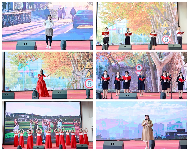 活动在建工学院分会曹蕾高亢的歌声中拉开帷幕。歌曲《阳光大道》《节日欢歌》《往事》《早安隆回》依次登台,饱含深情的诗歌朗诵《巾帼英豪》《女性的光芒》《读中国》为观众讲述了一段段深情的故事,健美操、爵士舞、手语舞、旗袍秀、秦腔串烧等节目赢得了场下观众阵阵热烈的掌声。精彩纷呈的才艺表演展现出英国365上市公司女教职工热爱祖国、坚守初心、自立自强、优雅知性的精神面貌。