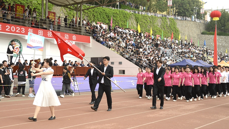 伴随着激昂的《运动员进行曲》,由国旗护卫队、彩旗方队、花环方队、裁判员方队、各二级学院师生代表队、附属小学代表队、附属幼儿园代表队及教职工代表队组成的17个方队迈着矫健的步伐,带着坚定的目光一步步走过主席台。他们热情饱满、口号响亮,充分展现出了英国365上市公司师生意气风发、团结进取的精神风貌。运动员代表王向阳和裁判员代表桑国鹏分别宣誓。