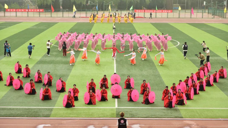 在开幕式文艺表演中,数计学院带来的节目《盛夏光年 心国旋律》动感十足,跳出了生命的节拍,舞出了青春的风采;人文学院的《上洛踏歌行》,将古典舞姿的妙曼婀娜融合在汉服文化和戏曲表演中,为现场师生带来一场传统艺术美的盛宴;经管学院通过节目《党旗飘飘 天耀中华》,用火热的激情绽放出青春的光芒,用赤诚的信念谱写青春的华章;附属小学精彩的武术扇《精武少年》,在一招一式中展现出中华武术的飘逸潇洒和儿童独有的蓬勃朝气;艺术学院在《花开新时代》中凝聚舞美、服美、声美,用专业与热爱描绘出积极向上的青年花样年华。