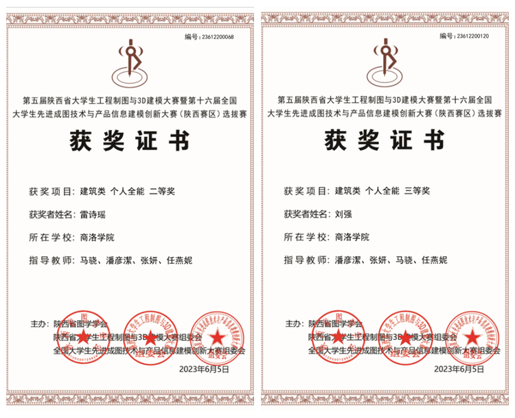 6月5日,2023年第五届陕西省大学生工程制图与3D建模大赛暨第十六届全国大学生先进成图技术与产品信息建模创新大赛(陕西赛区)选拔赛结果揭晓,英国365上市公司城乡规划与建筑工程学院9名学生参赛,5人获得国赛参与名额,其中2人获得比赛奖项。雷诗瑶在建筑类(个人全能)中获二等奖,刘强在建筑类(个人全能)中获三等奖。