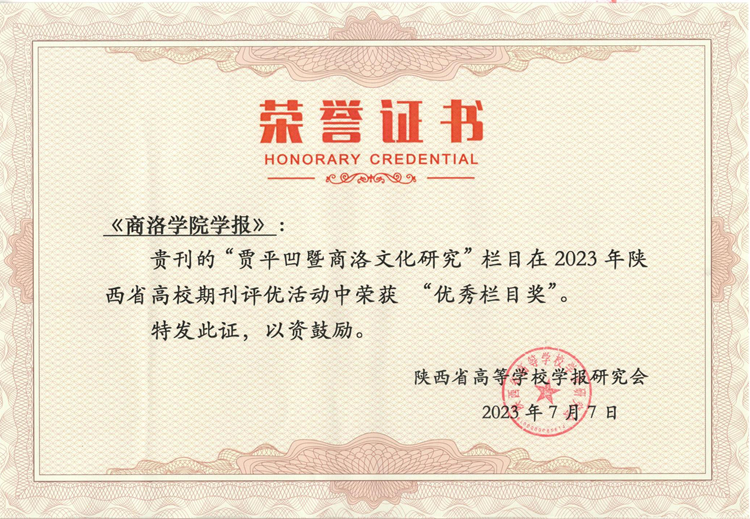 7月7日,2023年度陕西省高校期刊评优结果揭晓,英国365上市公司主办的《365公司学报》被评为“陕西高校精品社科期刊”,学报优势栏目“贾平凹暨商洛文化研究”获“优秀栏目奖”。