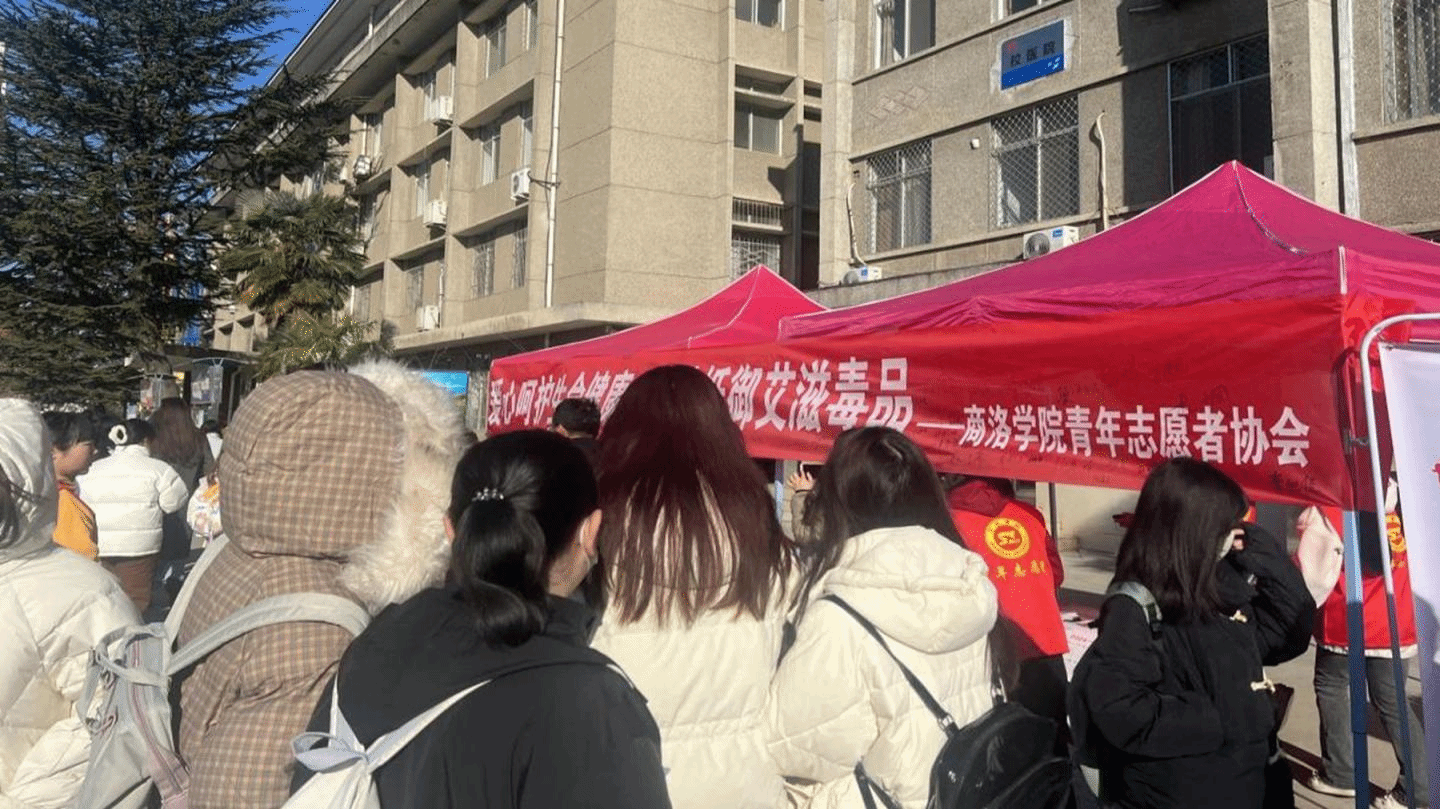12月1日,在商州区禁毒办、商洛市疾控中心协助下,校医院联合青年志愿者协会,在北新街校区和丹江校区同时开展“爱心呵护生命健康 行动抵御艾滋毒品”宣传暨签名活动。活动现场展示了新型毒品样品,并发放毒品防范与艾滋病预防宣传彩页、海报,普及毒品及艾滋病防治相关知识。