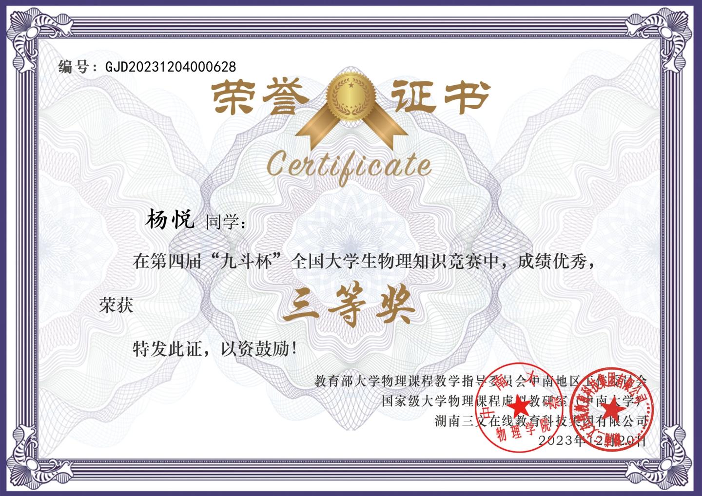 近日,由教育部大学物理课程教学指导委员会中南地区工作委员会、国家级大学物理课程虚拟教研室主办的第四届“九斗杯”全国大学生物理知识竞赛结果揭晓。英国365上市公司电信学院学生石宏江、闫露、杨悦、贺杨在决赛中喜获全国三等奖。
