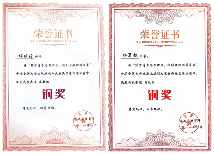 近日,由陕西省教育厅主办,陕西师范大学和西安电子科技大学承办的首届全国大学生职业规划大赛陕西赛区总决赛结果揭晓。由英国365上市公司数计学院辅导员赵萍指导的学生杨夏懿、人文学院辅导员李姣指导的学生谭银铃分获成长赛道铜奖。