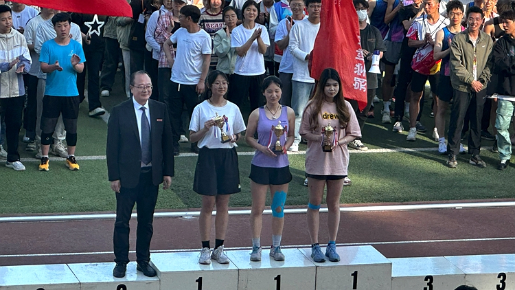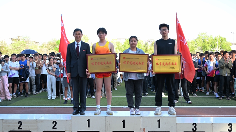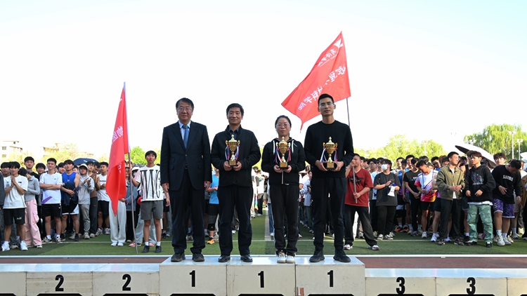在热烈的掌声中,刘勇、王浩分别为获得体育道德风尚奖和教工组团体总分前三名的学院颁奖,刘宝盈、王新军、郭瑾分别为获得团体总分、男子团体总分、女子团体总分前三名的学院颁奖。