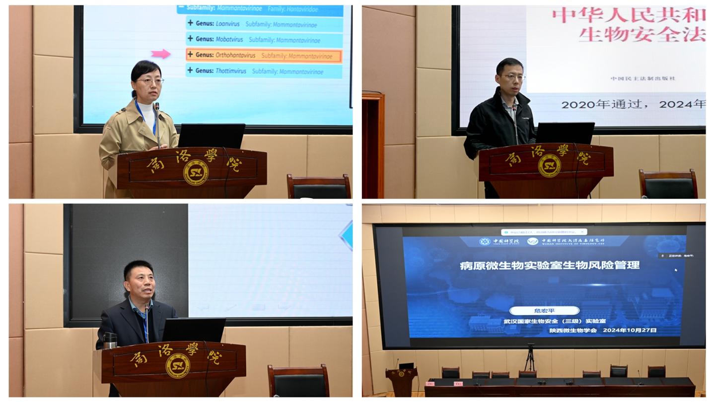 在陕西省微生物学会第二届生物安全学术研讨会环节,空军军医大学张芳琳教授、西安交通大学王洪亮教授、陕西省疾病预防控制中心余鹏博主任医师、中国科学院武汉病毒研究所危宏平研究员等4位专家学者聚焦生物安全,分别作了题为《肾综合征出血热研究进展》《生物技术与生物安全》《猴痘及其防控》《病原微生物实验室生物风险管理》的学术报告。4位专家在报告中围绕生物医学前沿技术和生物安全风险防控,多角度、全方位阐述了各自研究领域的重点技术,为微生物学发展和技术突破提供了极具价值的前沿性研究思想与成果。