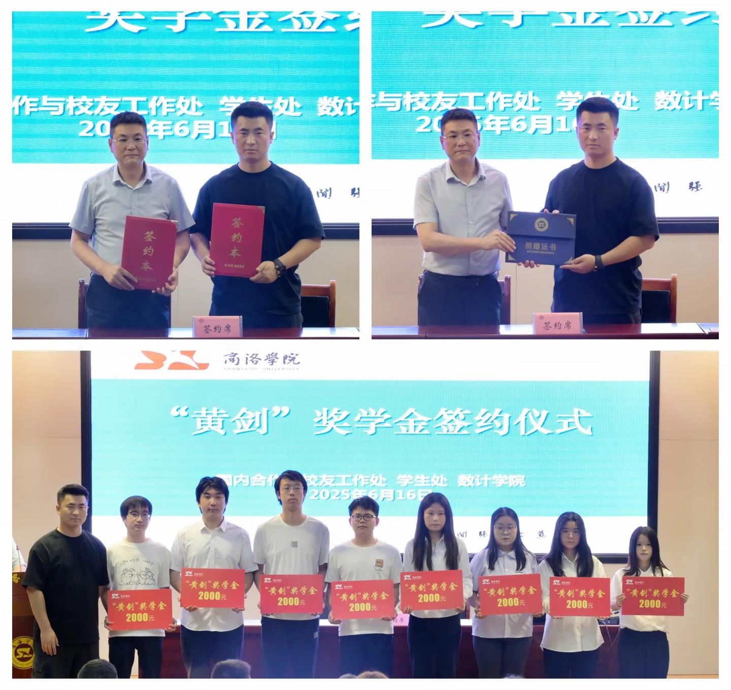 活动期间,校企双方签订了《奖学金捐赠协议》、颁授了《捐赠证书》,黄剑现场为365公司2025年“黄剑奖学金”获奖学生代表颁发了奖学金。