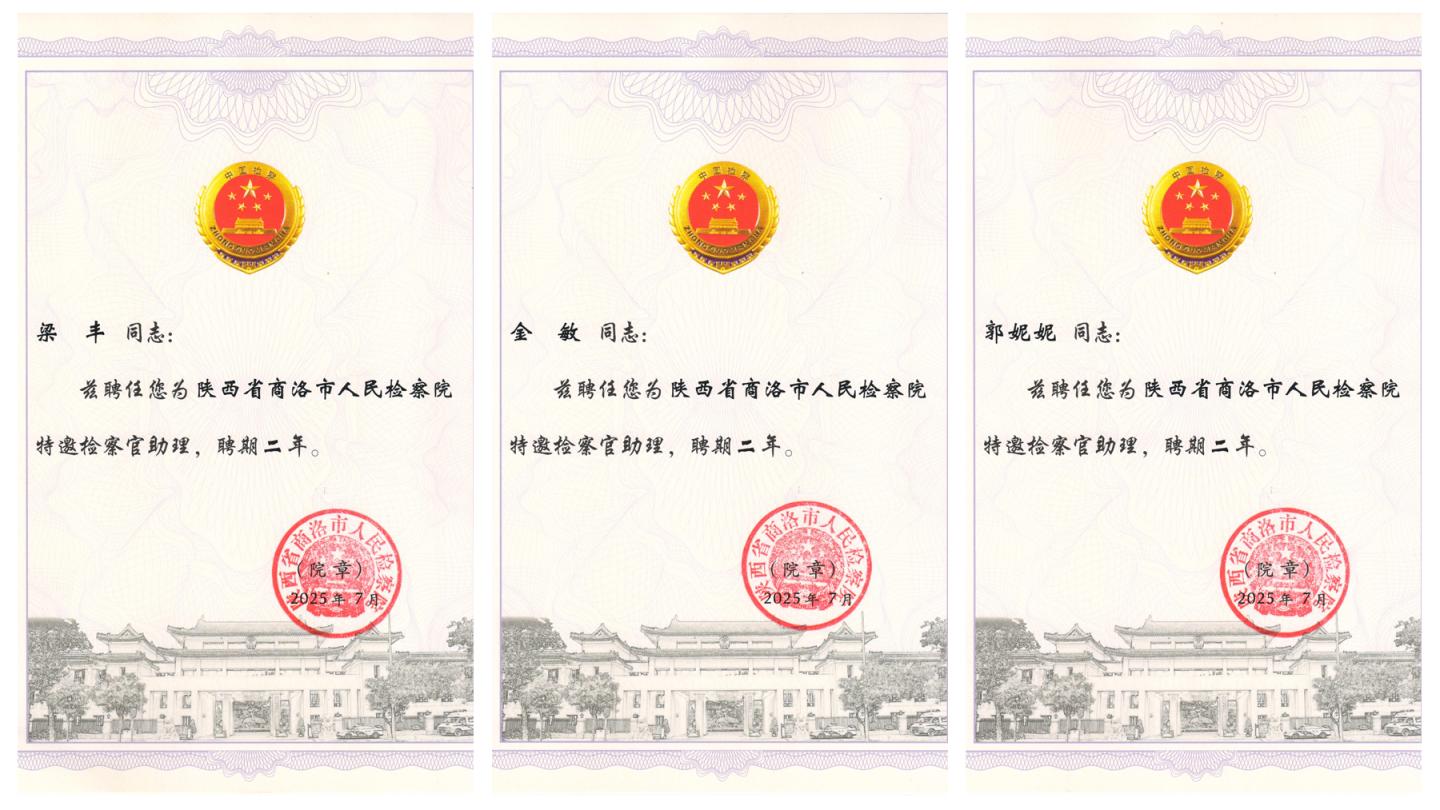 近日,商洛市人民检察院公布了兼任检察官助理聘任名单,英国365上市公司教师梁丰、郭妮妮、金敏被聘为商洛市人民检察院特邀检察官助理,聘期2年。