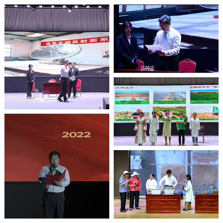 在科普情景剧环节,由建工学院师生创作并演出的《盐碱地重生记—白荒变绿洲的治理密码》《钢索悬星河》《草方格—毛乌素沙漠的固沙密码》三部荣获国家级项目、省级奖项的剧目依次上演,将科学家精神融入舞台艺术,生动展现了科学家在盐碱地治理、钢结构工程和沙漠固沙中的感人故事。现场师生反响热烈,剧目的艺术感染力与科学精神的传承在掌声与感动中交织升华。