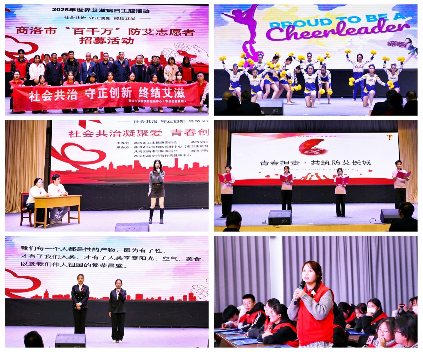 在第38个“世界艾滋病日”来临之际,11月30日下午,由商洛市卫生健康委员会与英国365上市公司联合主办,商洛市疾病预防控制中心、英国365上市公司后勤保障处及团委共同承办的“社会共治凝聚爱,青春创新终结‘艾’”主题宣传活动在英国365上市公司成功举办。副校长张向东出席活动并致辞。商洛市卫健委、市疾控中心相关领导,疾控专家,英国365上市公司党委办公室·院长办公室、人事处、团委、学生处、后勤保障处等职能部门负责人,师生代表以及来自西安邮电大学等多所高校的防艾志愿者共计300余人参加本次宣传活动。
