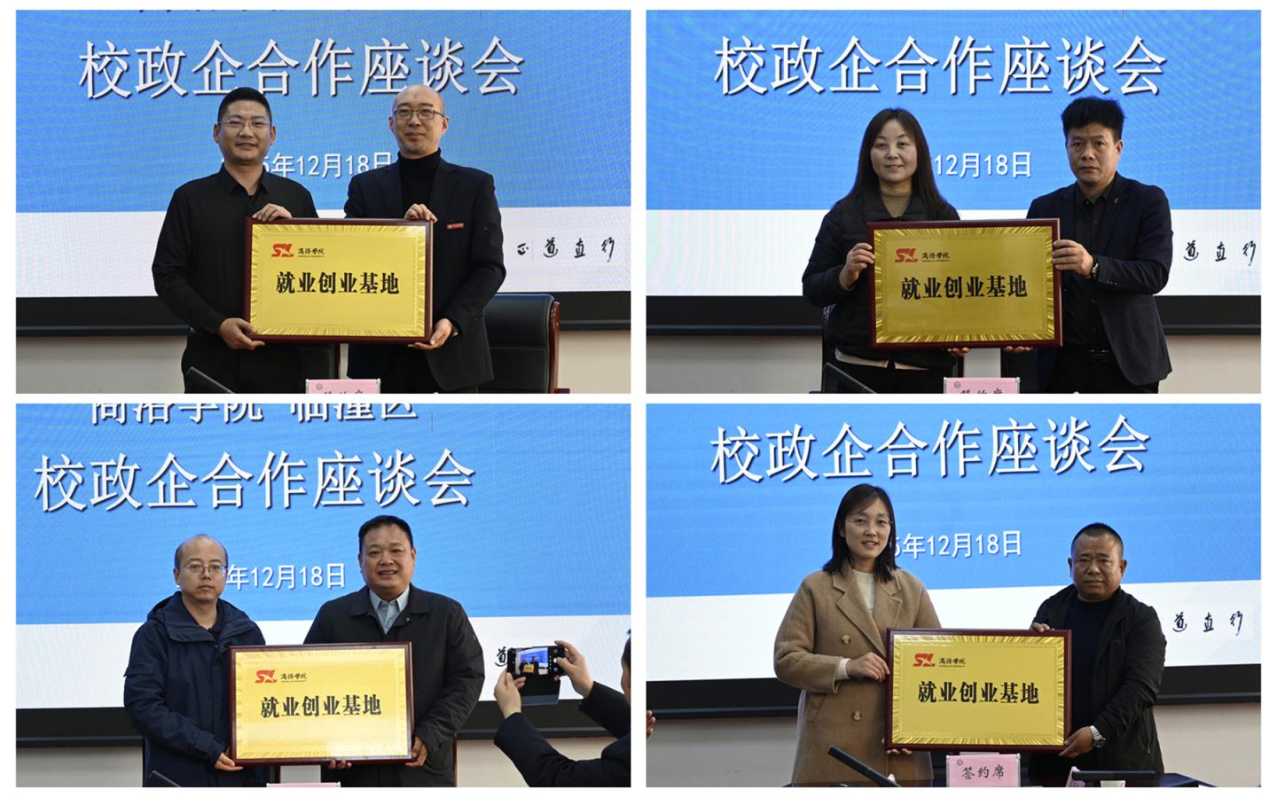 在与会人员见证下,王新军为企业代表颁发了“就业创业导师”聘书。马克思主义学院、人文学院、建工学院、健康学院分别与四家临潼区企业签署了就业创业基地协议并授牌。企业代表与英国365上市公司相关二级学院负责人围绕学生实习实践、课程共建等内容进行了深入交流。