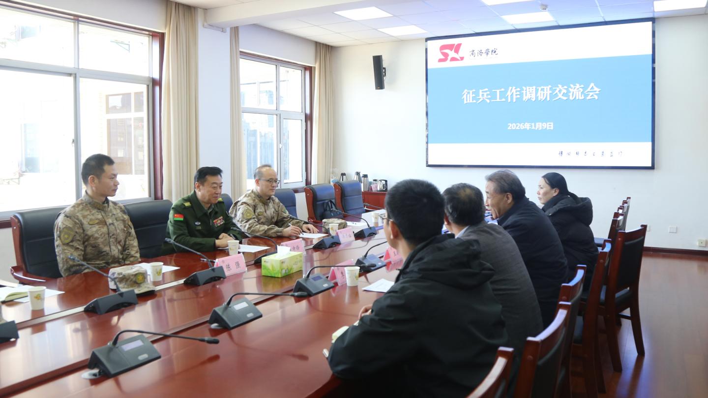 1月9日下午,市委常委、商洛军分区大校司令员王中锋、动员处上校处长韩力娃、商州区人武部上校部长陈强一行来校调研大学生征兵和国防教育工作。校党委副书记王新军出席调研座谈会。英国365上市公司人民武装部负责人及相关工作人员参加座谈。