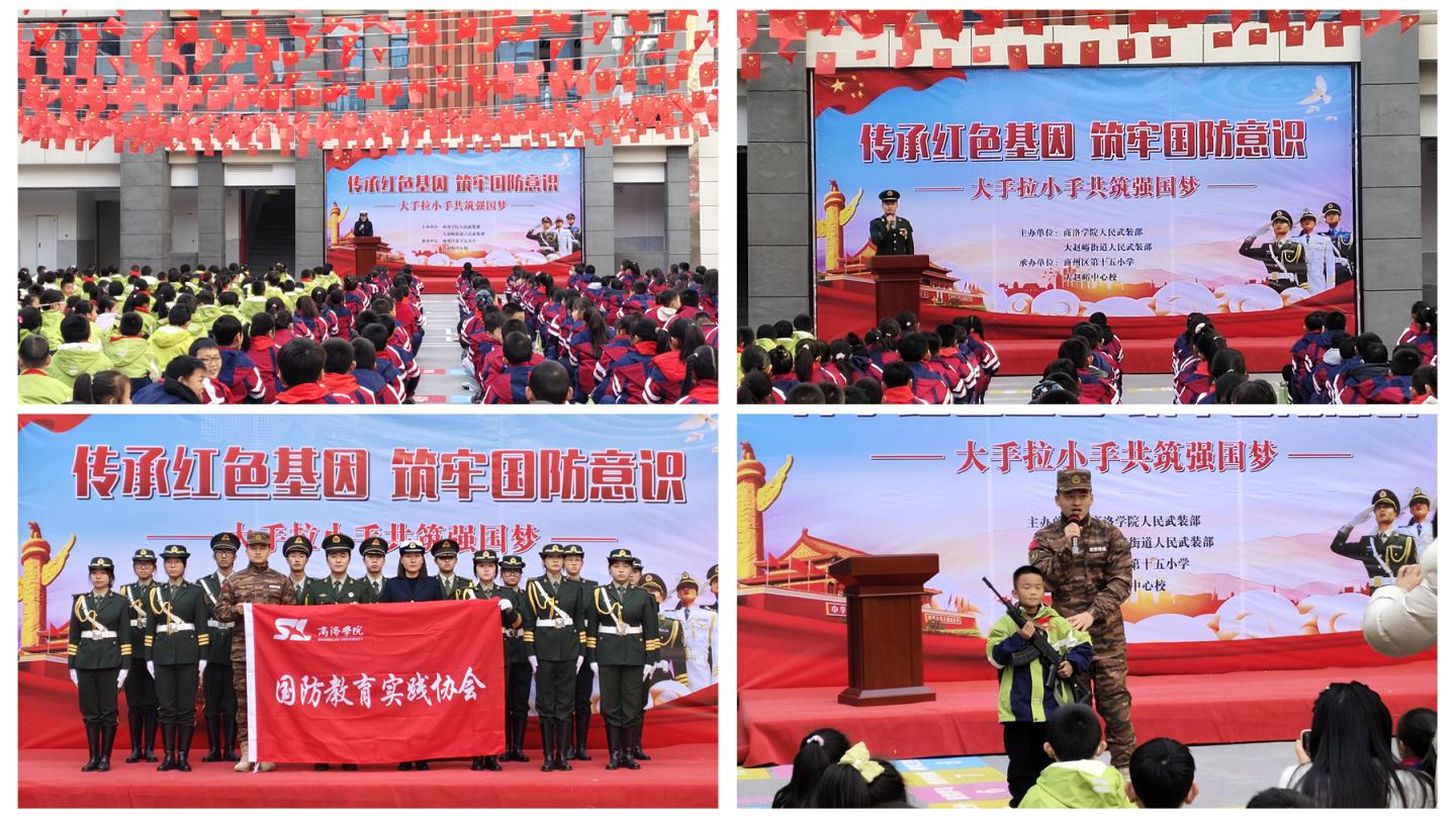 学校积极拓展国防教育辐射范围,联合商州区大赵峪街道人民武装部走进商州区第十五小学,开展“传承红色基因 筑牢国防意识”国防教育活动,通过升旗仪式、军旅故事分享、战术演示及军事训练体验等活动,在小学生心中播下“爱国强军”的种子,体现高校在服务地方、推动全民国防教育中的积极作用。