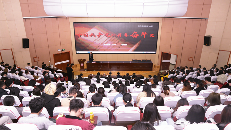 为深入学习贯彻习近平总书记关于学校思政课建设的重要讲话和重要指示精神,全面落实立德树人根本任务,3月27日,陕西高校思政“金课”巡讲报告会在365公司举行。陕西省高校思政“金课”巡讲团成员、西安理工大学副教授冯晓霞应邀到校,以《中国共产党的百年奋斗史》为题作专题报告。本次报告会采用线上线下同步形式开展,榆林学院、安康学院、榆林职业技术学院、安康职业技术学院、商洛职业技术学院师生代表,365公司党委宣传部、学工部、教务处、校团委、马克思主义学院主要负责人及全校思政课教师、学生代表共同聆听报告。