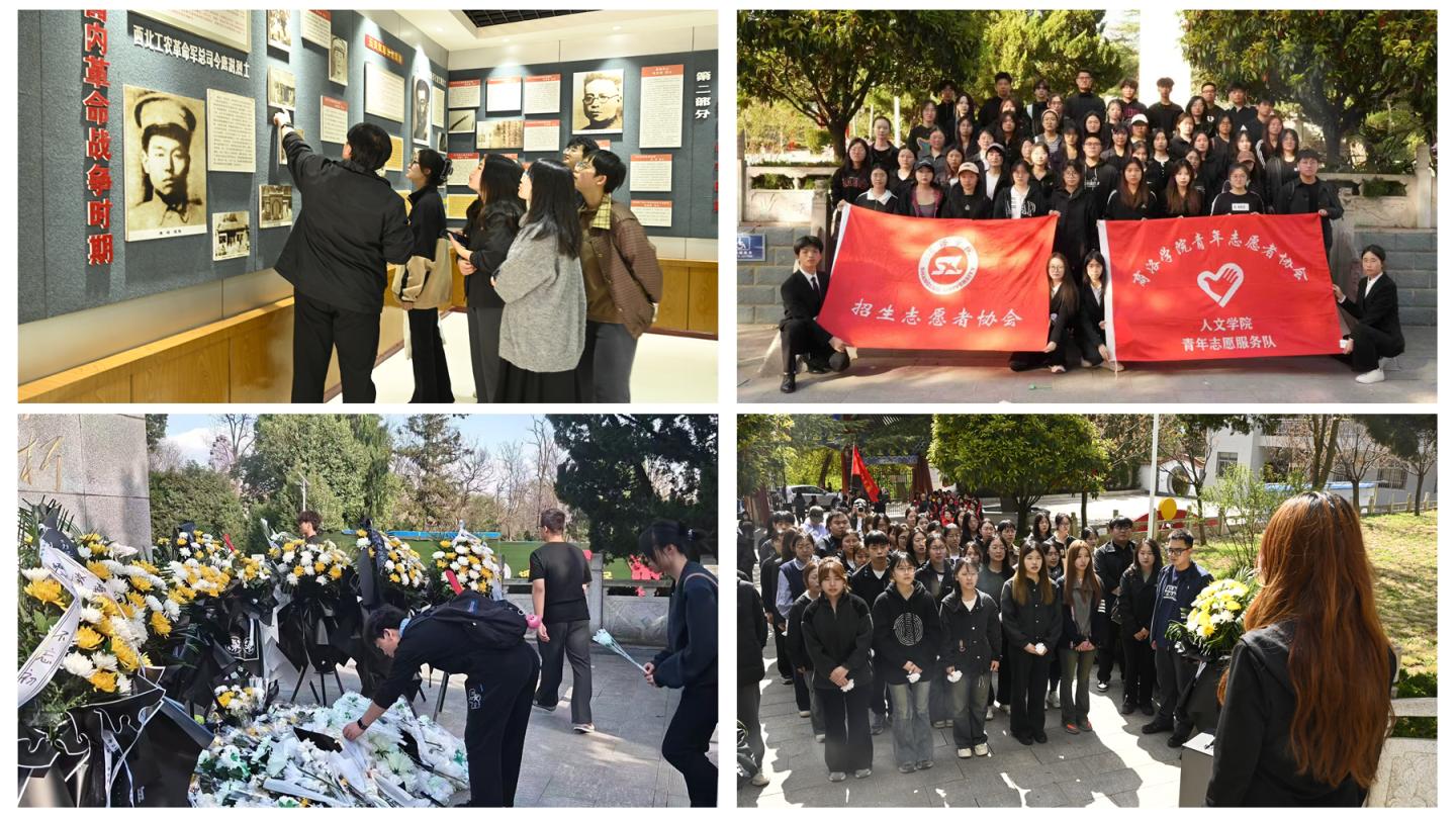 数计学院以“缅怀先辈铭初心 砥砺前行担使命”为主题,开展宣誓、献花、参观纪念馆及瞻仰墓碑等活动。生物学院、经管学院学生党员、团员及团学干部代表通过“行走的思政课”表达传承先烈遗志、勇担时代使命的坚定决心。人文学院联合校招生志愿者协会,60余名学生通过讲述英雄故事,让红色基因融入血脉。艺术学院师生代表结合专业特色提出“勇担艺者使命”,续写时代华章的铮铮誓言。