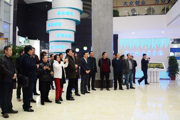 在陈义德、章红军、朱先鹏的陪同下,彭虎军一行深入商南神州科技产业园,参观了以“电子商务+”为创业孵化模式的众创空间,了解了众创空间创业孵化的政策、布局和公司运营情况。