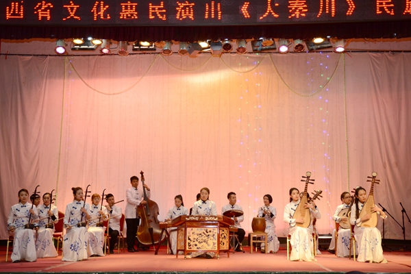 本次音乐会分民族器乐和声乐表演两大部分,既有充满民族风情的秦腔、民歌演唱,又有板胡、二胡、唢呐、笛子等民族特色乐器演奏。音乐会以一曲高昂、豪迈的二胡齐奏《战马奔腾》开场,《西部放歌》《秦腔牌子曲》《秦川抒怀》、《大秦川》《花好月圆》等曲目次第登场。其旋律时而柔和,时而欢快,时而磅礴,时而激昂。歌唱家们以其深厚的唱功,高亢的音调、优美的音色,丰富的感情将歌曲中的豪放粗犷、激情澎湃、荡气回肠等特色表现得淋漓尽。演奏家们高超的技艺,将二胡、琵琶、唢呐等民族乐器发挥到极致,带领观众们领略中华传统民族音乐的风情。在一首壮怀激烈的民族管弦乐《好汉歌》中,音乐会圆满落下帷幕。